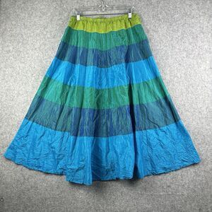 Vintage Cache Silk Maxi Skirt Womens M Blue Green Iridescent Western Boho Full