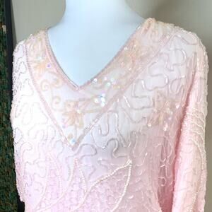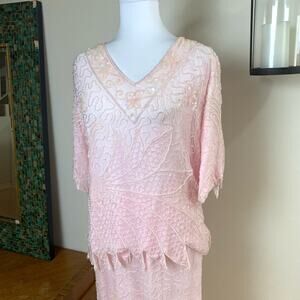 Vintage Cache Mark & John II Size 8 Pure Silk Beaded Beaded Skirt Set Pink