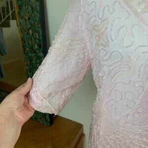 Nice Vintage Condition. No rips, stains or tears. There are a few missing beads but not noticeable due to the tone on tone design. The elastic in the waist looks like it may be a DIY. It's perfectly functional with plenty of stretch. No smoke/ No pets. Properly Cleaned and packaged with care.