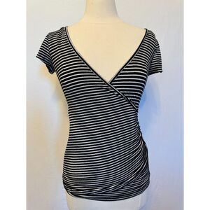 Vintage Cache Sparkly Black and White V Neck Short Sleeve Top Size XS - fits like a size small
