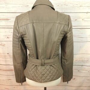 Vintage Cache Taupe Quilted Genuine Leather Beige Belted Moto Jacket