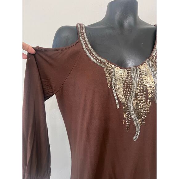 Vintage Cache Top Sz M Metal Heavily Studded Design Keyhole Shoulder Brown Y2K