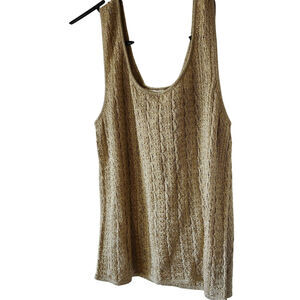 Vintage Cache Womens Medium Y2K Gold Metallic Knit Tank Top Cableknit Evening