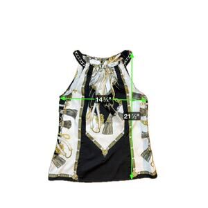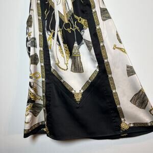 Vintage Cache Y2K Chain Link Top Silky Blouse Black White Gold Size XS Halter
