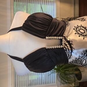 Plunge Front With Embellished Crystal Neckline Detail
