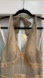 This chic backless halter dress offers a stylish and sophisticated look. The cream color enhances its elegant design, making it perfect for any special occasion.