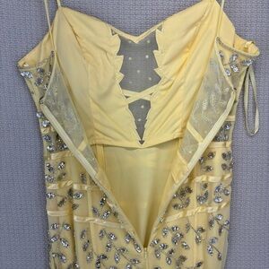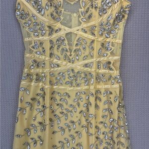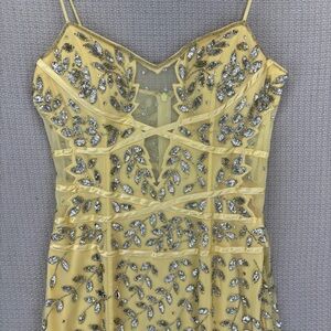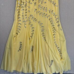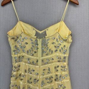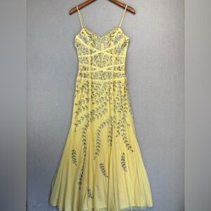 Vintage Cache Yellow Beaded Evening Gown Women L- Maxi Sleeveless Cocktail Sheer