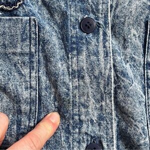 Vintage Cache acid wash blue denim embellished padded shoulders button up SZ S