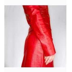 Cherry red croc-embossed 100% leather skirt suit. Gold hardware. In excellent condition.