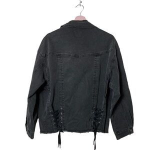 Vintage Cache ombré traveler lace up back embellished black jean jacket S/M
