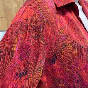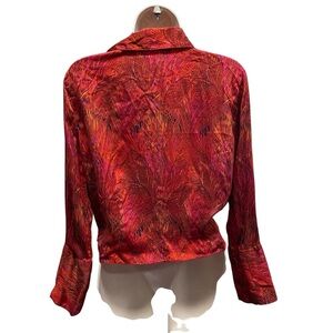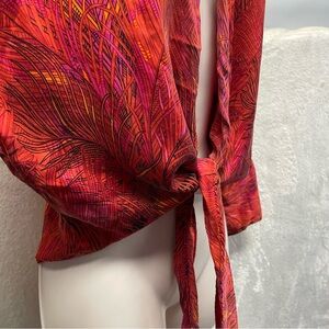 Vintage Cache women’s tie front silk blouse 70s feather print size medium