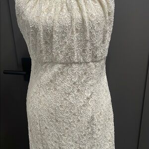 This elegant cream lace dress is perfect for any special occasion. Its intricate design and classic color make it a timeless addition to your wardrobe.