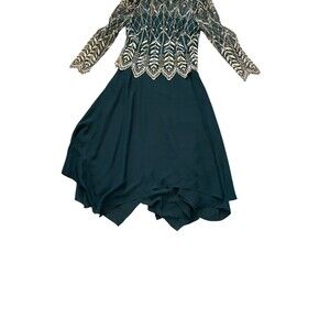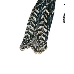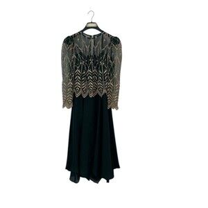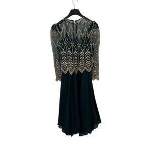 Vintage Cachet by Bari Protas Green Chiffon Dress With Gold Embroidery Size 8