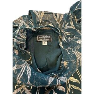 Embrace timeless elegance with the Vintage Cachet by Bari Protas Green Chiffon Dress, a stunning choice for any formal occasion or wedding. This size 8 dress showcases a beautiful interplay of green hues complemented by exquisite gold embroidery that adds a touch of luxury to the overall design. Crafted from high-quality polyester, the dress promises both comfort and durability, ensuring you look and feel your best throughout the event. The regular size type offers a flattering fit for a variety of body shapes, while the dress's style effortlessly carries the essence of classic sophistication.