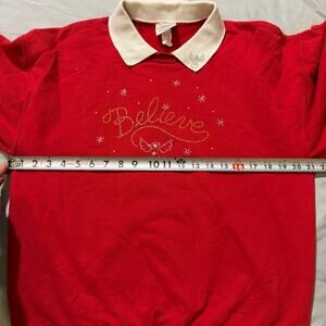 Vintage Cactus Bay Red/White Jeweled Christmas "Believe" Collared Sweatshirt- M