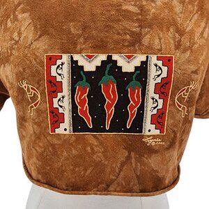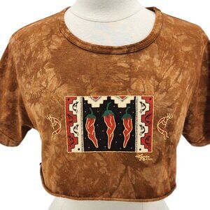 Vintage Cactus Bay by Lynee Womens Large Top Chili Peppers Tie Dye Graphic Puffy Print Cropped
