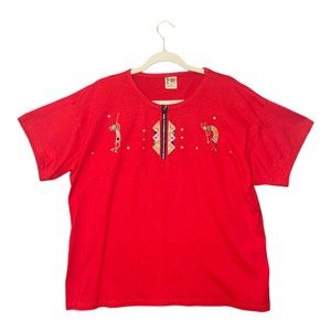 Vintage Cactus California Red Embroidered Kokopelli Tee Shirt XL Short Sleeve