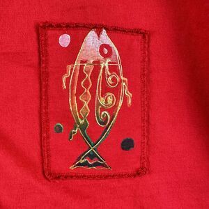 Vintage Cactus Cotton Cardigan Top Womans XL Red Painted Fish Sea 90s Y2K Ocean*