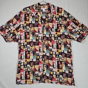 Vintage Caesars Entertainment Old Las Vegas Button Up Hawaiian Shirt Sz Medium