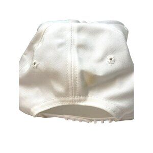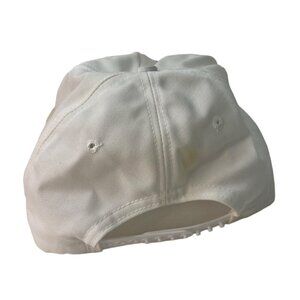 Some yellowing on the brim and faint discoloration near the embroidery. Back to front = 7.5 inches, brim width = 3 inches.