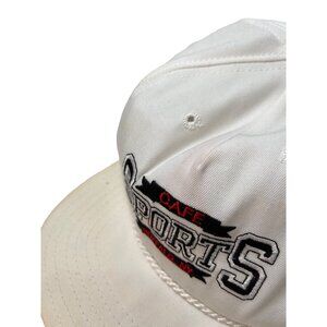 This vintage snapback tells a story of spirited gatherings at Cafe Sports in Buffalo, NY. Its classic white design with bold embroidery exudes nostalgic charm.