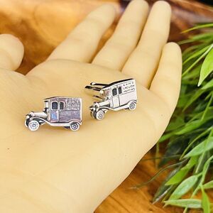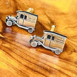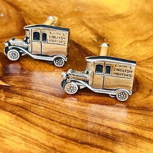 Vintage Cain’s English Muffins Men’s Oldtimer Car Cufflinks Silver Tone OOAK