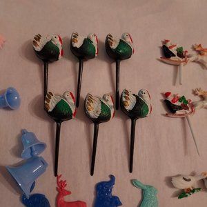 Lot of vintage Cake decorations. Look at the pictures and video for what you will receive. These I believe are from the 1950-1960's. That is my estimate by where they came from. Thanks for looking at my items and have a great day.