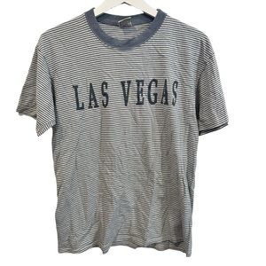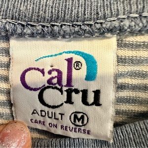Vintage Cal Cru Shirt Mens medium Blue Short Sleeve Crew Neck Stripe Las Vegas