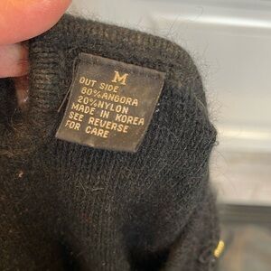 Super soft 80% Angora 20% nylon. With an acrylic inside so it won't be scratchy