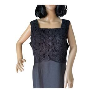 Vintage Cali Cali black Linen Crochet Sleeveless Maxi Dress button size 14 P