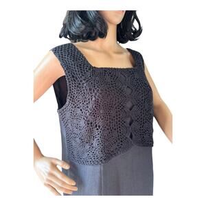 Vintage Cali Cali 90's black Linen Crochet Bust Sleeveless Maxi Dress with side button closing