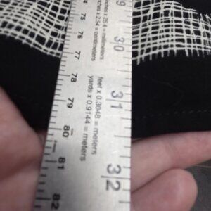 Color: Black with abstract white dot and grid patterns, unique graphic border at hem