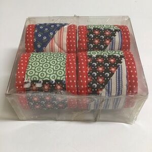 Vintage Calico Fabric Quilted Napkin Rings SET OF 4 Dining Boho Farmhouse NEW
