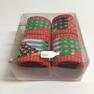NEW IN BOX - Really cute SET OF 4 quilted napkin rings with red and white polka dot border trim. Each ring measures approximately 2” wide and 2 1/4” long.