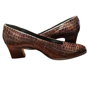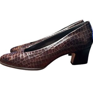 LIKE NEW Vintage Calico Women’s Heels/Pumps - Style English6. Size 8. These chic brown crocodile-embossed pumps add a bold, textured element to any outfit. The timeless design offers both sophistication and versatility, perfect for work or evening wear. A must-have addition to your shoe collection!