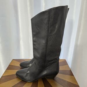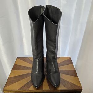 Vintage Calico Riding Boots. Soft genuine black leather. Mid calf pull on boots. Pointed toe.