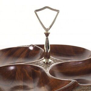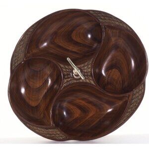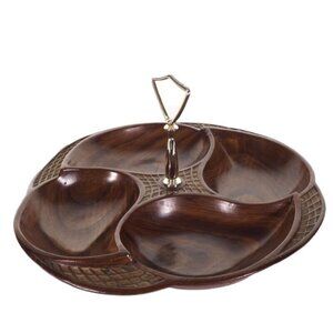 Vintage California 328-USA Wooden Look Resin Serving Tray With Handle & Leaf Des