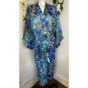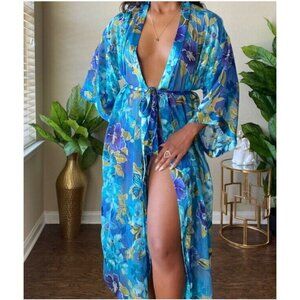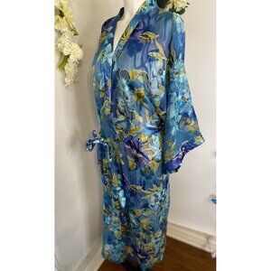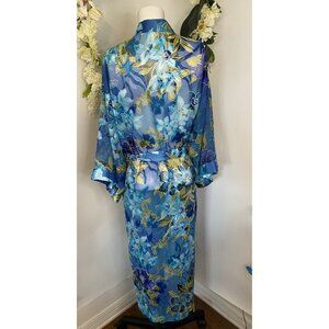 Vintage Gorgeous California Dynasty Blue Semi Sheer Floral Long Robe Size Medium Pockets. Model is wearing Similar Robe . Listing is for Robe on other pictures. Excellent Pre Owned Condition!! Pit to Pit: 20" Length: 50".