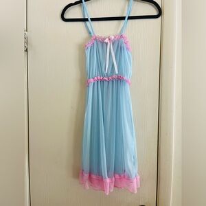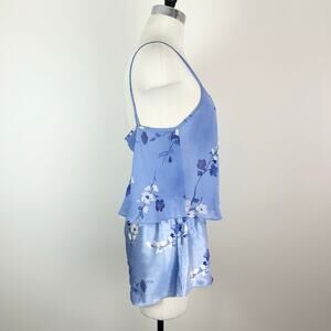 Vintage California Dynasty Sleep Set Blue Floral Sheer Satin Size Medium 1980s