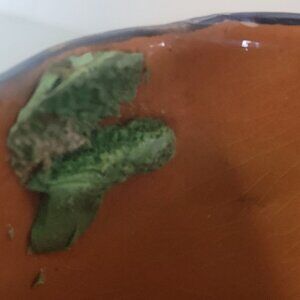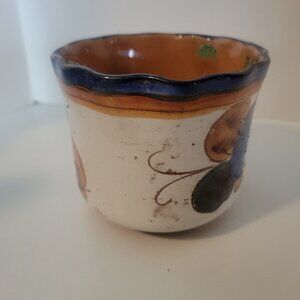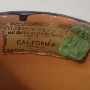 Vintage California Gardenware Florentine Terra Cotta Handcrafted Small Planter. It has some dried green clay on the inside. No chips, cracks. It is crazed on the inside and outside. Photos are an important part of the description.