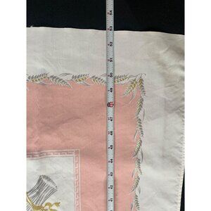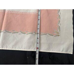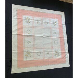 Vintage California Hand Prints Tablecloth Pink & White Floral Pattern 49"x53"