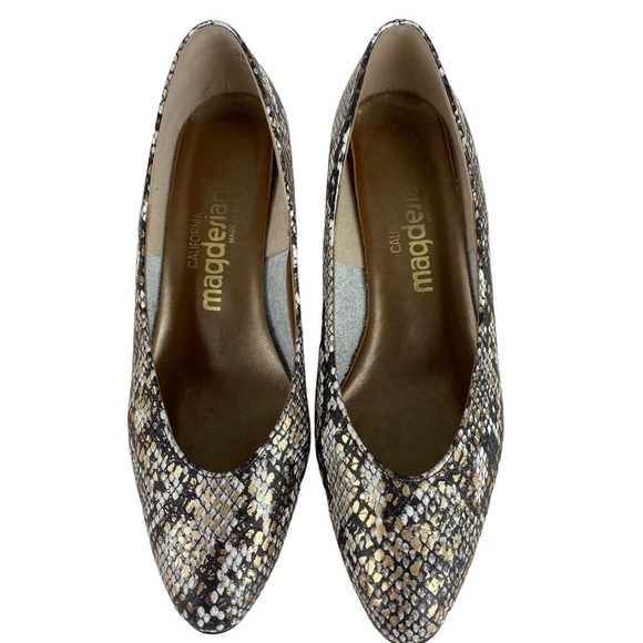 Vintage California Magdesians Heels Pumps Wedge Faux Snakeskin US Size 6.5M