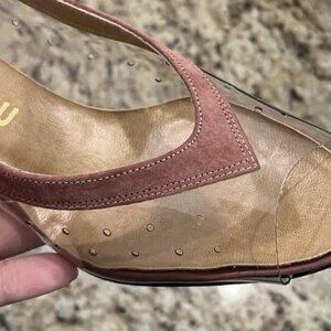 Vintage California Magdesians Women’s Clear Vinyl Suede Trim Peep Toe Size 6M