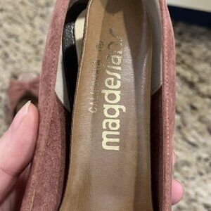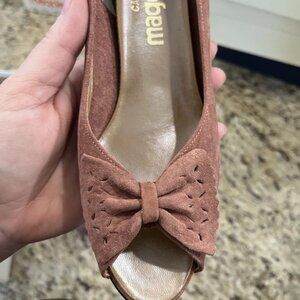Vintage California Magdesians Women’s Suede Peep Toe Wedge Heels Bow Size 6M