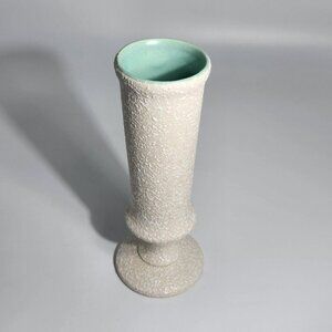 Vintage California Originals Pottery Vase White Splatter On Cream w/ Teal Tall