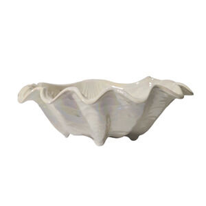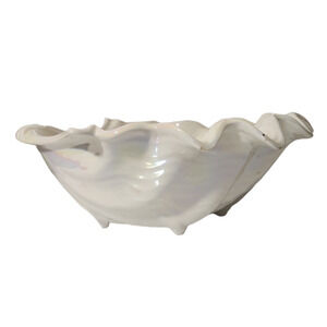 Vintage California Pottery Opalescent Scalloped Shell Bowl Dish Cream MCM