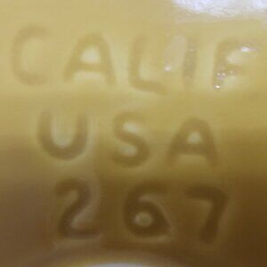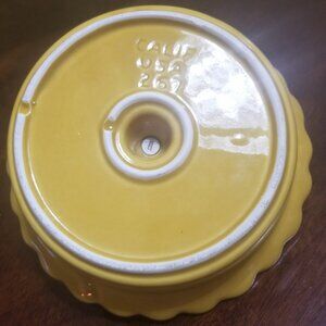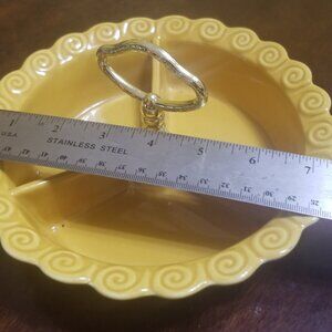 Vintage California Pottery USA #267 Gold divided dish 7.50" w gold tone metal handle- box 18 #2