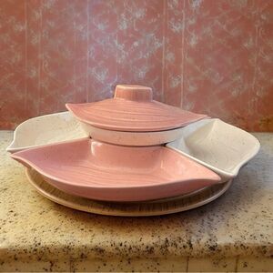 Vintage California Pottery Section Chip Dip Relish Lazy Susan Serving Snack Set