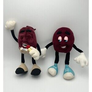These Vintage California Raisins Poseable Plush Toy Figures, produced by Applause in 1988, are a charming collection of three characters, each with unique accessories and expressions. Featuring posable limbs and vibrant details, these plush figures capture the iconic look of the beloved advertising mascots from the late 80s. Perfect for collectors and fans of nostalgic memorabilia, these toys are a delightful addition to any vintage collection. 2 plushes in set with minimal signs of use, see photos. Stored in a smoke-free home.