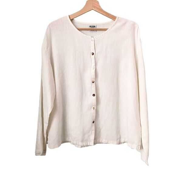 Vintage California Threads 100% Linen Made in USA Long Sleeve Blouse in Large